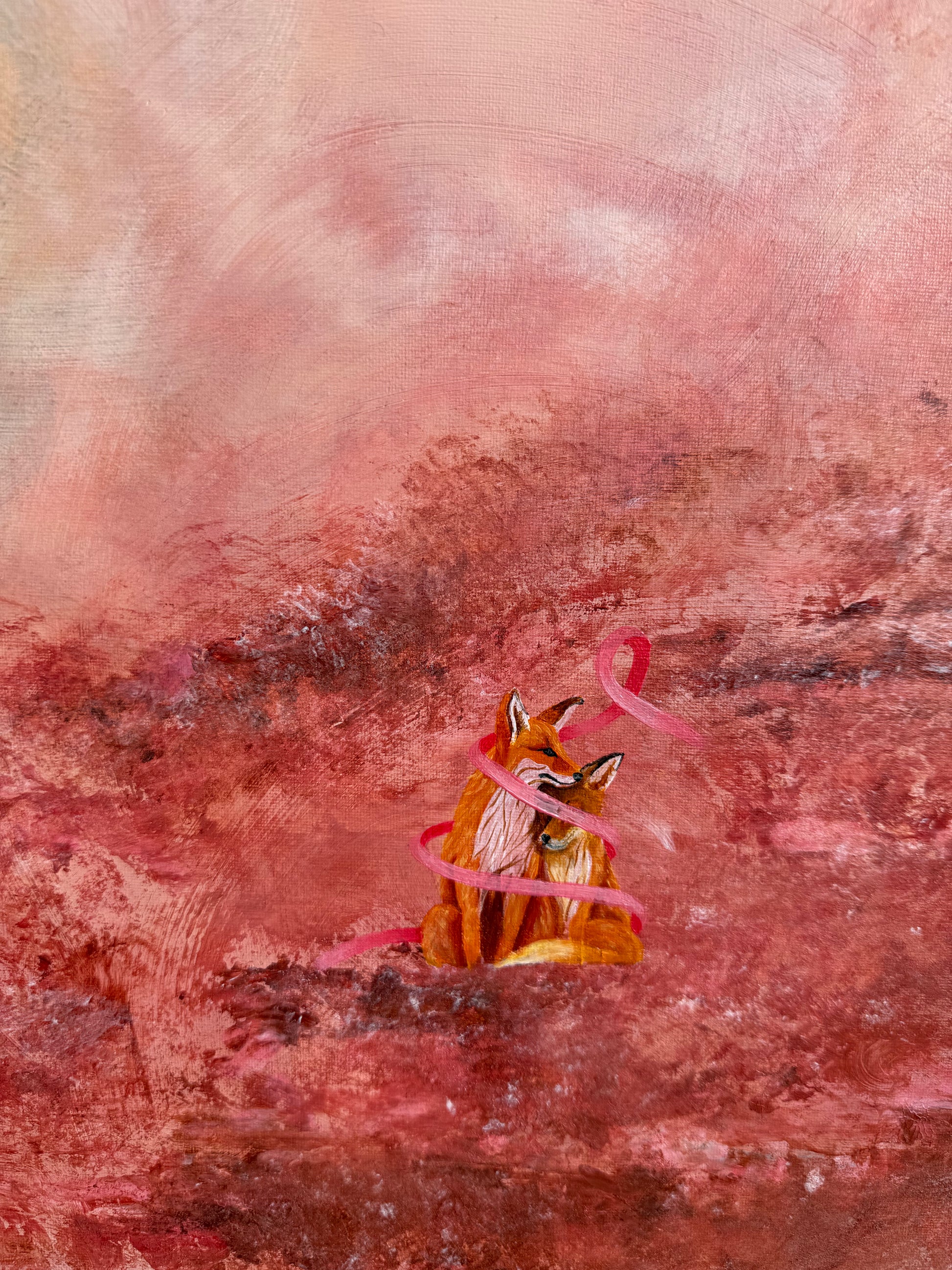 Håpets bånd er et maleri skapt med hjertet – et symbol på samhold, styrke og kjærlighet. Det minner oss om at vi aldri står alene, og at håp har en egen kraft – særlig når vi bærer det sammen.